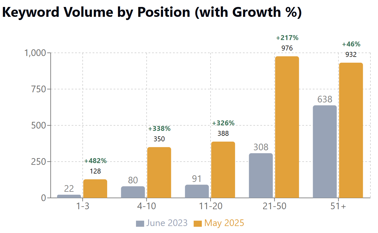 - Ranking Improvements (June 2023 vs May 2025):