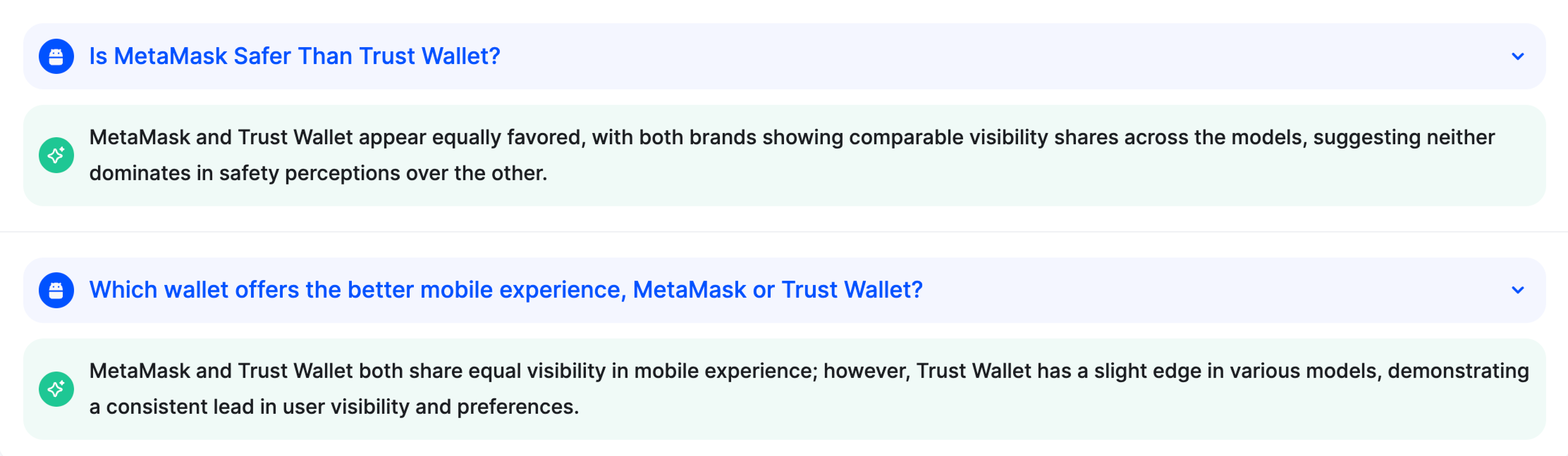 Q4: How does MetaMask's AI Visibility compare to Trust Wallet's?
